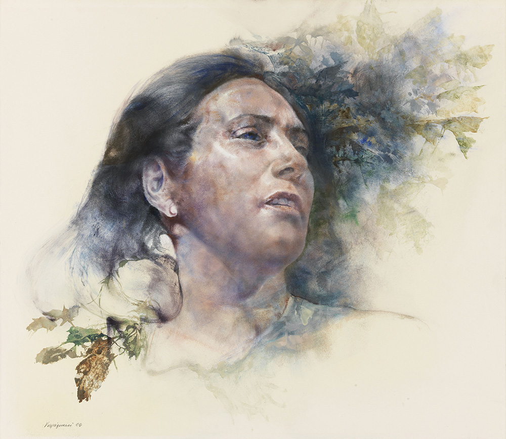 Renzo Vespignani, Roma 1924 - 2001, Volto di donna, 1982, Tecnica mista su...