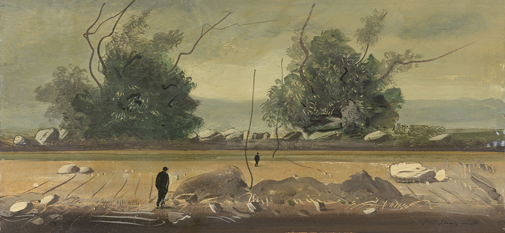 Pietro Annigoni, Milano 1910 - Firenze 1988, Paesaggio, Olio su tavola, cm. 24,4x52,5, Firma e monogramma in basso a destra: Pietro Annigoni., Foto autenticata dall'artista.
