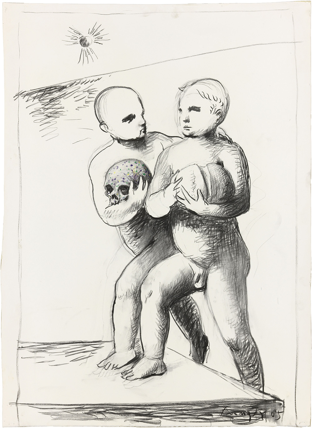 Lino Frongia, Montecchio Emilia (RE) 1958, Senza titolo, 2005, Carboncino e pastelli su cartoncino, cm. 93x67,8, Firma e data in basso a destra: Frongia 05.