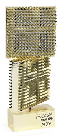 Franco Costalonga, Venezia 1933, Struttura sui movimenti della simmetria, 1980, Scultura in legno dipinto, cm. 30 h. (con base), Firma e data sulla base: F. Costa / Longa / 1980., Foto autenticata dall'artista in data 13/04/2005.