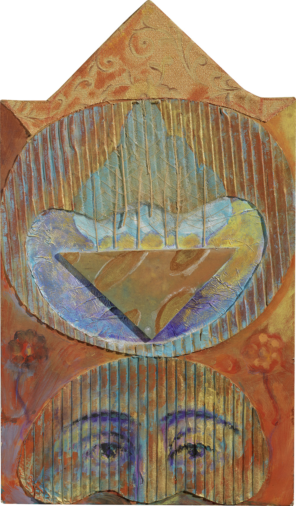 Bruno Ceccobelli, Monte Castello Vibio (Pg) 1952, Protetto diletto, Collage e tecnica mista su cartone, cm. 43,5x25, Sigla e titolo al verso: BC / Protetto / diletto., Foto autenticata dall'artista, Todi, 25 febbraio 2003, con n. BC30AA.