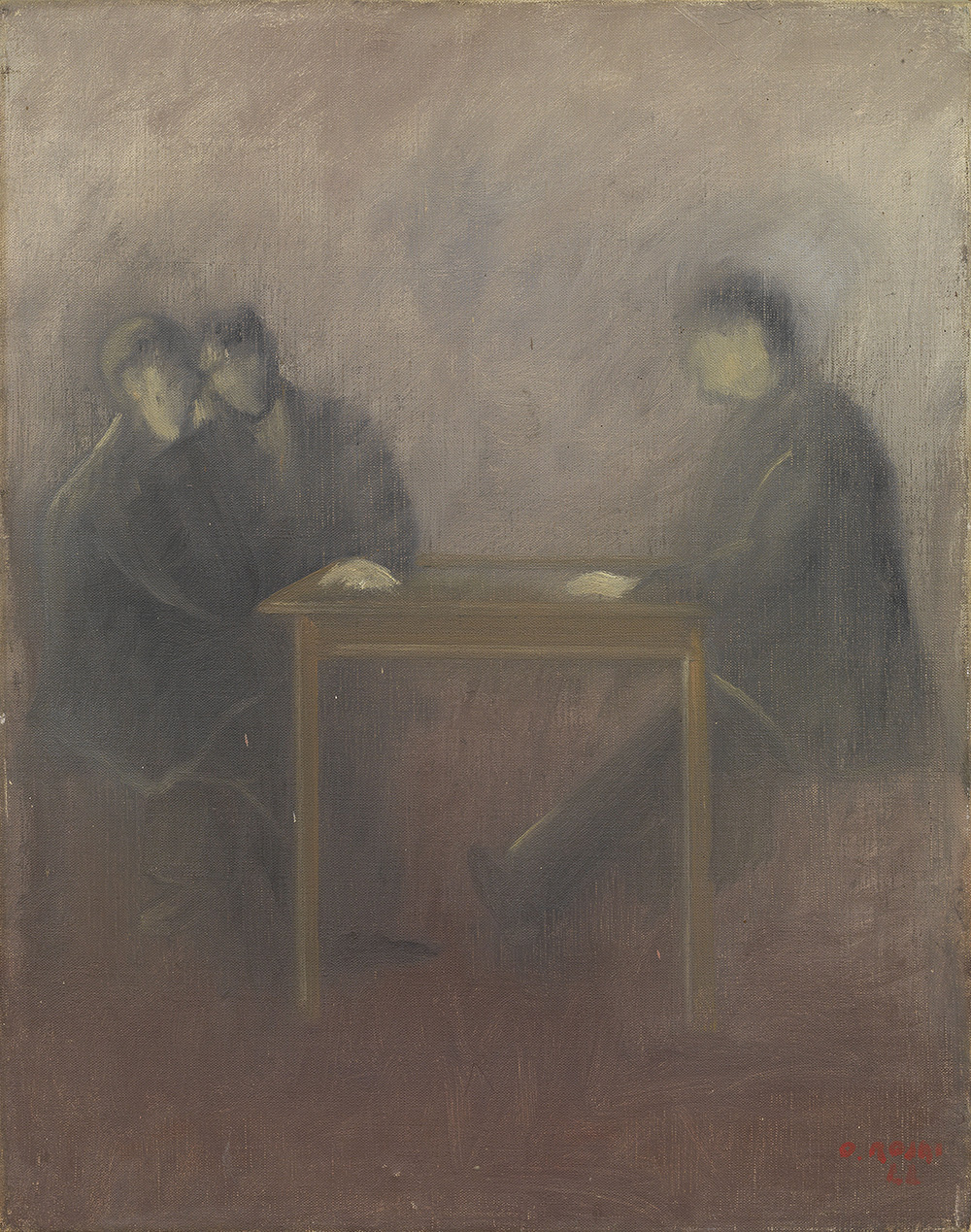 Ottone Rosai, Firenze 1895 - Ivrea (To) 1957, Interno con figure, 1944, Olio su tela, cm. 50,2x40,2, Firma e data in basso a destra: O. Rosai / 44., Storia: Collezione privata, Firenze; Collezione privata, Arezzo; Collezione privata, Bibliografia: Giovanni Faccenda, Catalogo Generale Ragionato delle Opere di Ottone Rosai. Primo Volume, Editoriale Giorgio Mondadori, Milano, 2018, p. 448, n. 231.