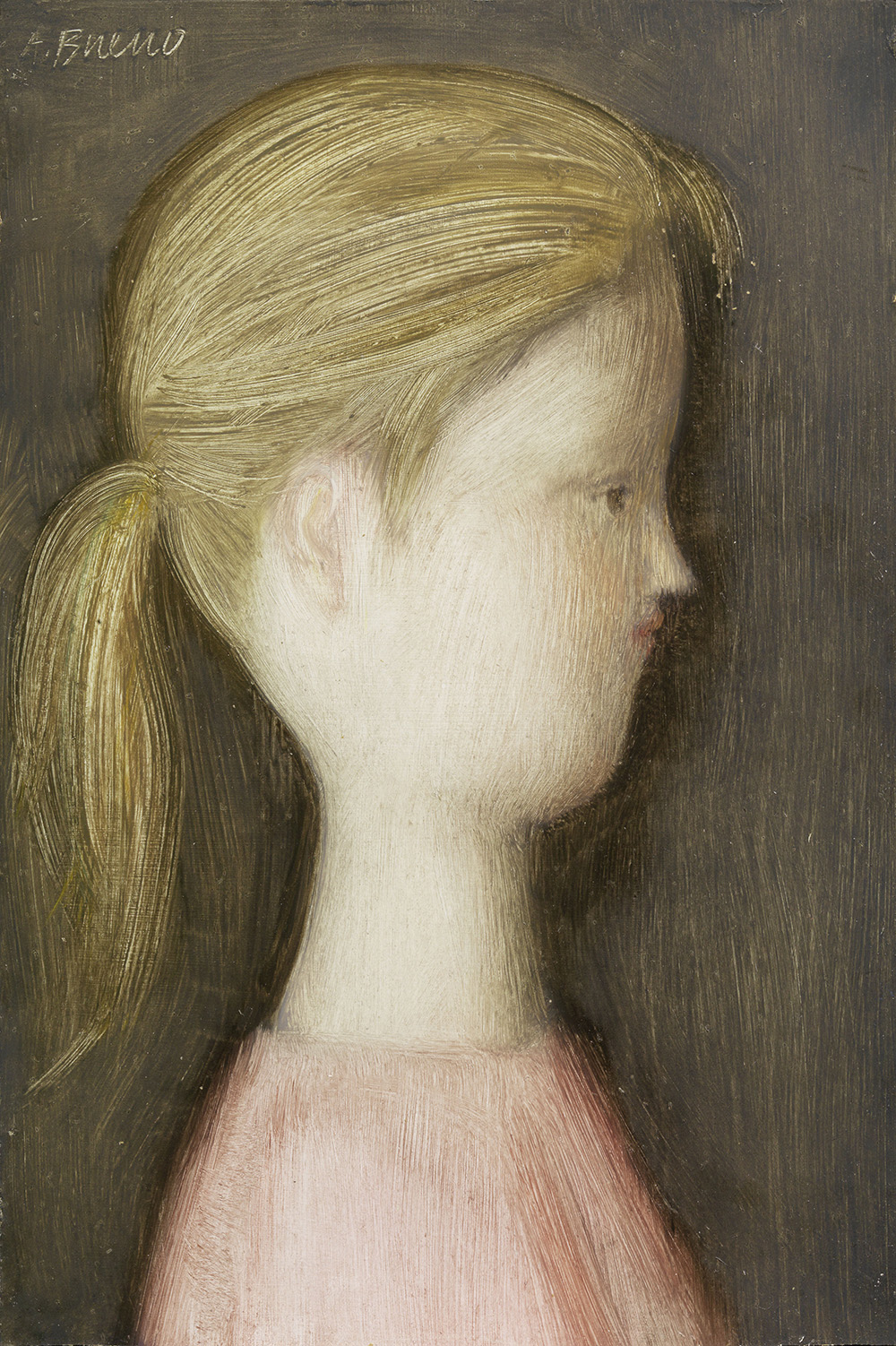 Antonio Bueno, Berlino 1918 - Fiesole (Fi) 1984, Profilo, Olio su faesite, cm. 30x20, Firma in alto a sinistra: A. Bueno.