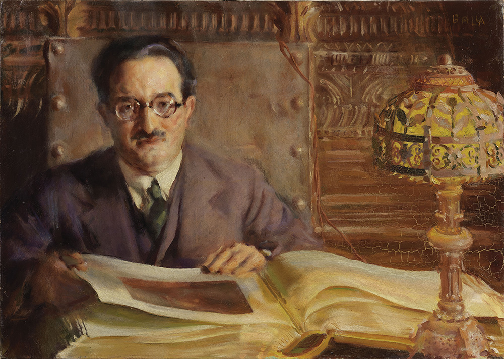 Giacomo Balla, Torino 1871 - Roma 1958, Ritratto dell'editore Tuminelli, 1928, Olio su tela, cm. 64,2x90,5; Firma in alto a destra: Balla.; Storia, Collezione privata, Roma;, Collezione privata; Esposizioni, I Quadriennale d'Arte Nazionale, Roma, Palazzo delle Esposizioni, gennaio - giugno 1931, cat. n. 3;, Giacomo Balla, opere dal 1902 al 1943, Milano, Galleria Annunciata, 29 novembre 1986 - 10 gennaio 1987, cat. n. 45, illustrato a colori.; Bibliografia, Guglielmo Jannelli, Giacomo Balla, in Oggi e domani, a. IX, Roma, 6 aprile 1931;, Giovanni Lista, Balla, Edizioni Galleria Fonte D'Abisso, Modena, 1982, p. 407, n. 904 (con misure e indicazione di firma errati).