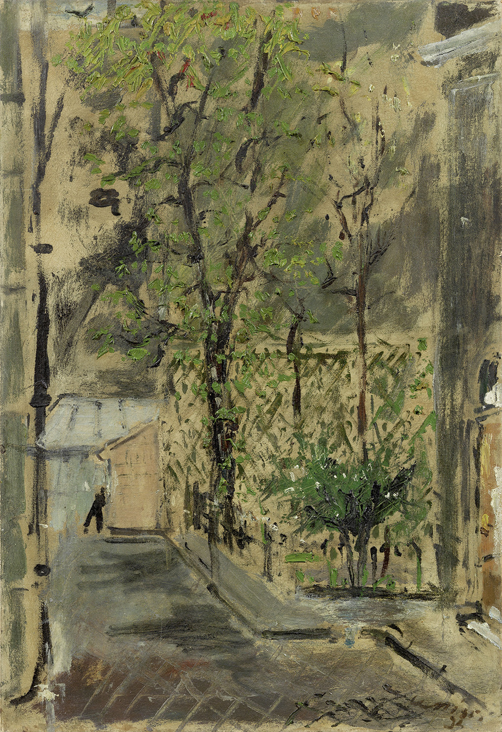 Filippo de Pisis, Ferrara 1896 - Milano 1956, Scorcio di Parigi, 1932, Olio su tela, cm. 73x49,8; Firma e data in basso a destra: Pisis / 32. Numero d'archivio al verso sul telaio: 03983.; Storia, Zwemmer Gallery, Londra;, Collezione privata; Opera archiviata presso l'Associazione per il Patrocinio e lo Studio della Figura e dell'Opera di Filippo de Pisis, Milano, 3 maggio 2012, al n. 03983.; Bibliografia, Giuliano Briganti, De Pisis. Catalogo generale, tomo primo, opere 1908-1938, con la collaborazione di D. De Angelis, Electa, Milano, 1991, p. 294, n. 1932 16.