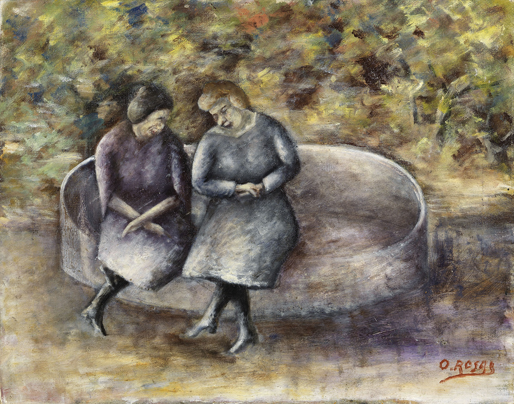 Ottone Rosai, Firenze 1895 - Ivrea (To) 1957, Donne sulla panchina, (1926), Olio su tela, cm. 56x71; Firma in basso a destra: O. Rosai; numero e titolo al verso sul telaio: 31 / Donne sulla panchina X: etichetta parzialmente abrasa e timbro con n. 645 Galleria d'Arte del Naviglio, Milano.; Storia, Galleria del Naviglio, Milano;, Collezione privata; Esposizioni, Ottone Rosai, Bologna, Galleria d'Arte Stivani, 9 ottobre - 2 novembre 1971, cat. tav. 5, illustrato (opera datata 1925);, 100 opere di artisti toscani, Prato, Galleria Farsetti, 1972, cat. tav. 84, illustrato a colori (opera datata 1926).