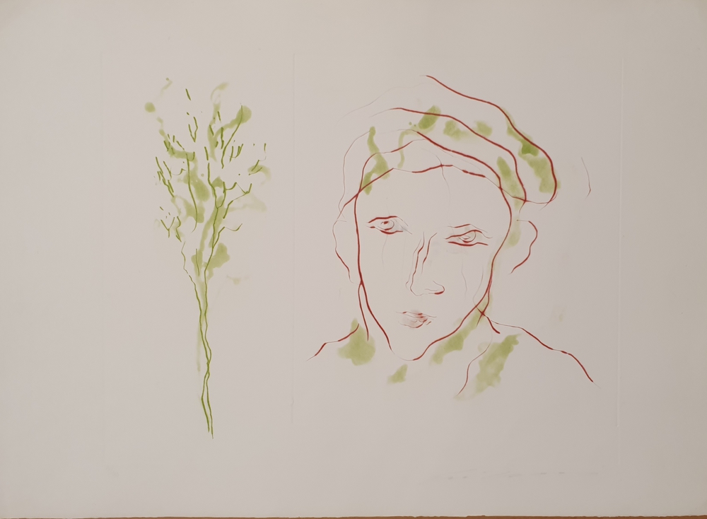 TRECCANI ERNESTO (1920 - 2009) Composizione con volto Doppia incisione all'...