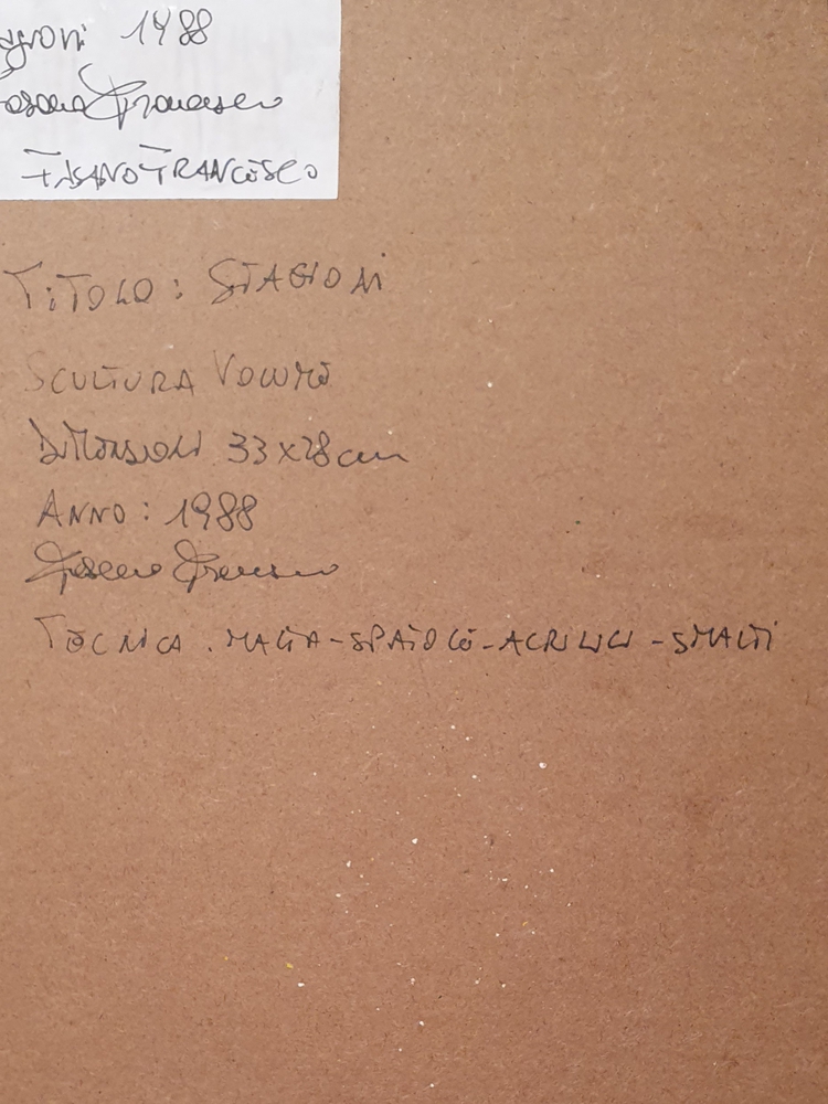 Lot 28 | FASANO FRANCESCO (1966) Stagioni, 1988 Scultura volume su tavola 33x28 cm...