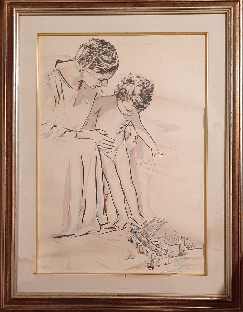 FIRMA NON DECIFRATA Maternità Litografia 50x70 cm