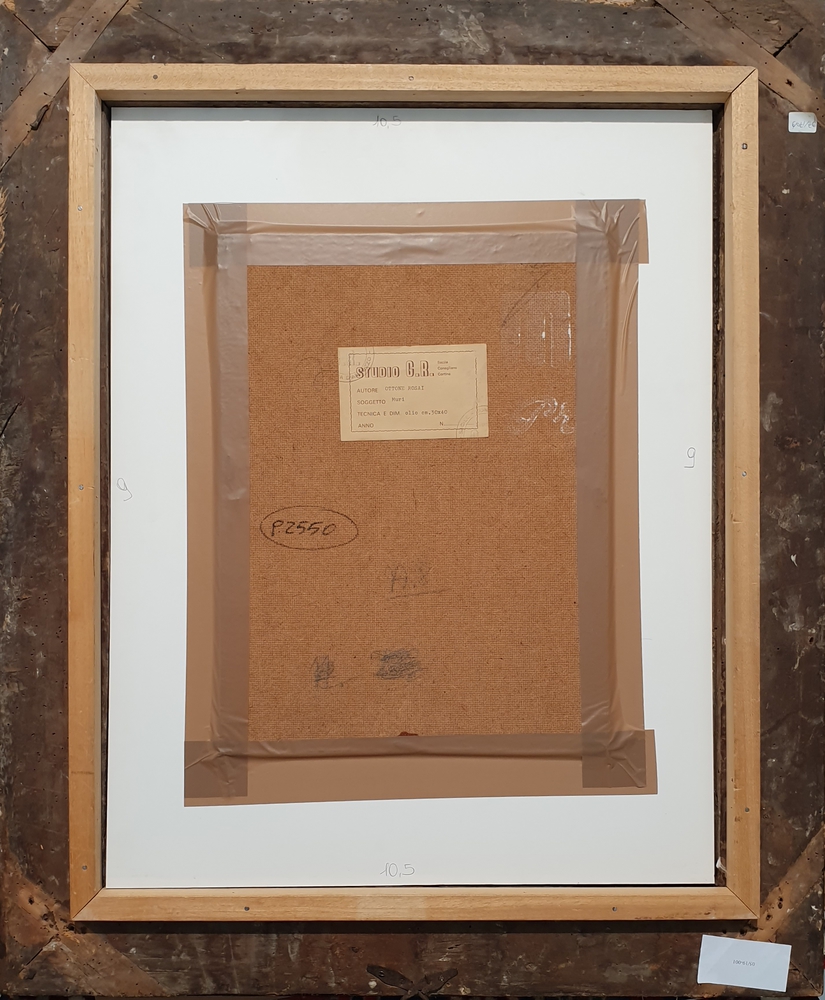 Cartiglio descrittivo al retro dello Studio G.R. (Sacile) con timbri e dati dell'opera.