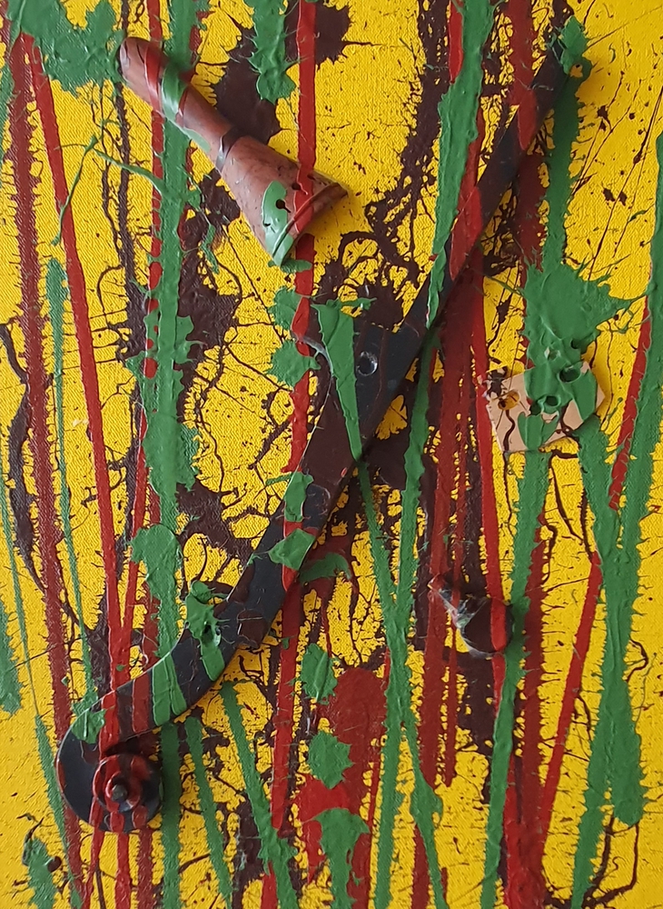 ARMAN FERNANDEZ (1928 - 2005) Senza titolo, 2003 Violino tagliato su tela applicato su tavola e acrilici 40x30 cm Firma sul lato in basso Opera registrata presso l'Archivio delle Opere di Arman a cura di Dante Vecchiato Galleria d'Arte al n. F1709-1030 con documentazione