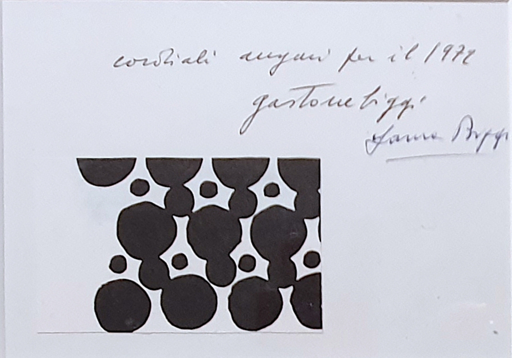 BIGGI GASTONE (1925 - 2014) Senza titolo, 1972 Tecnica mista su carta 10x14 cm Firmato a destra con dedica e anno Certificato di provenienza di Studio d'Arte Borromeo (MI)