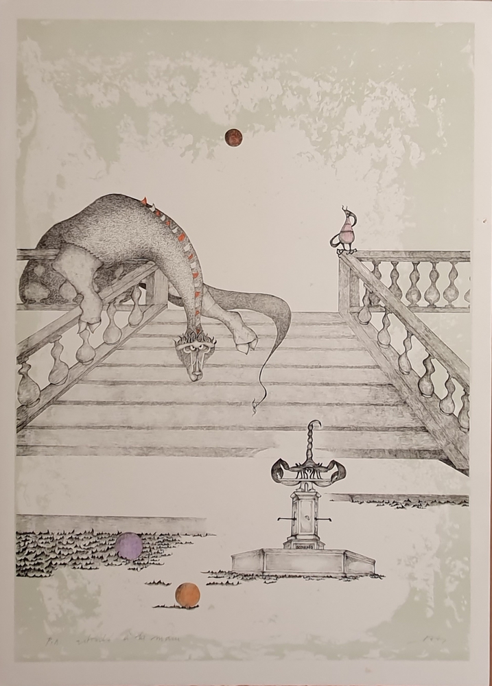 AUTORI VARI Drago e personaggi n.2 litografie su carta 70x50 cm Firmate e tiratura in basso di entrambe