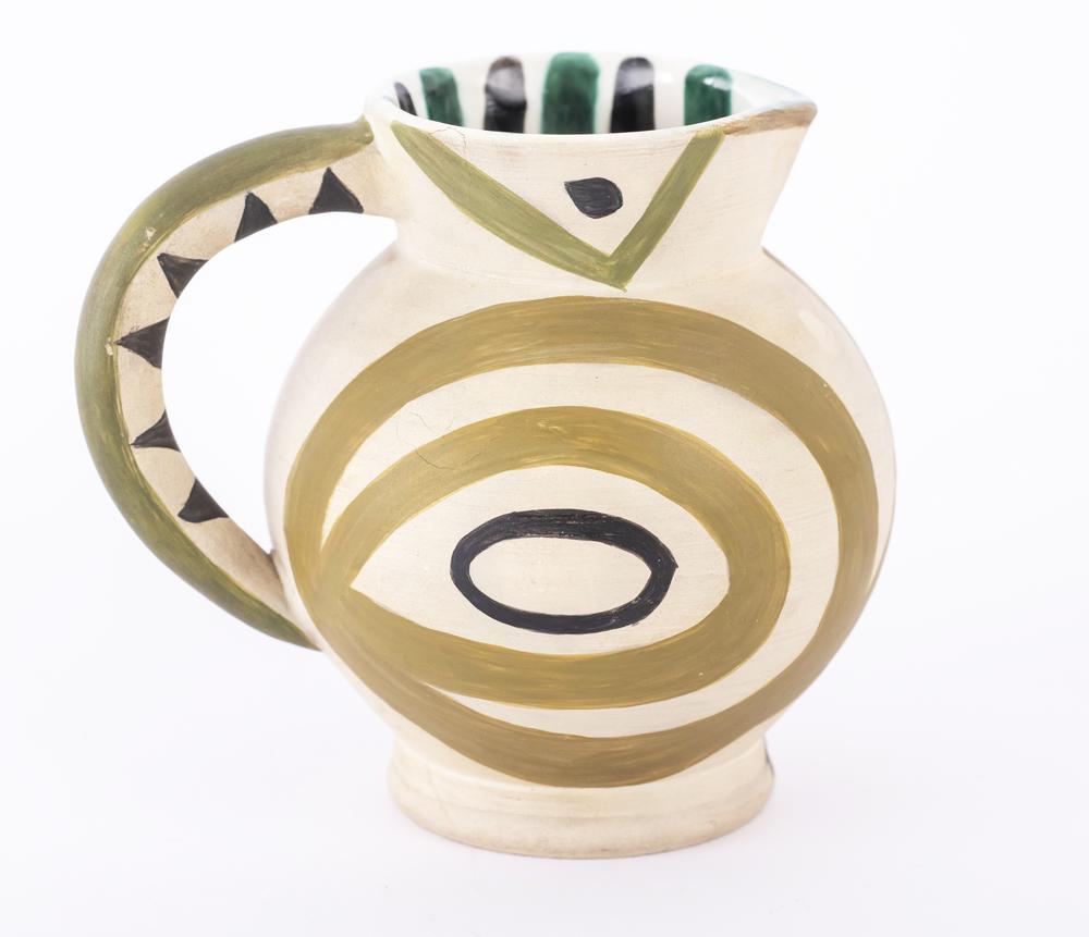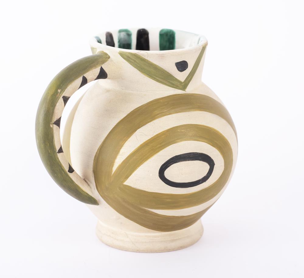 D'Apres Picasso BROCCA PETITE CHOUETTE terracotta bianca, decorazione in engobes, smaltata internamente, h cm 12,5 sul fondo: Timbrato "Madoura Plein Feu / D'après Picasso" realizzazione Madoura, edizione di 500 esemplari Ideata nel 1949 Bibliografia di riferimento: Alain Ramié Picasso, Catalogue raisonné de l’oeuvre céramique de Picasso de 1947 à 1971, Galerie Madoura, 1988 - soggetto simile descritto e riprodotto a colori sotto il n. 83, p. 53 con varianti di colore a seconda del modello