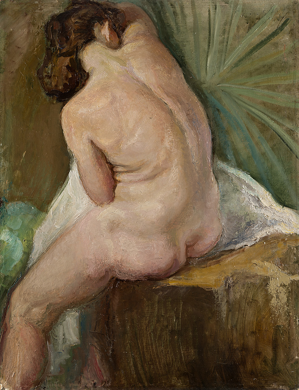 Cipriano Efisio Oppo (Roma 1891 - 1962)"Nudo femminile seduto di spalle" olio...