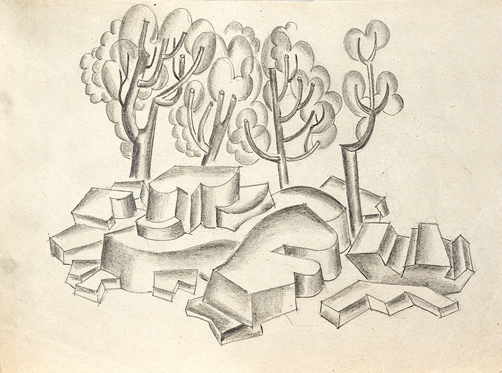 Fortunato Depero (Malosco 1892 - Rovereto 1960)"Piante e rupi" matita su...