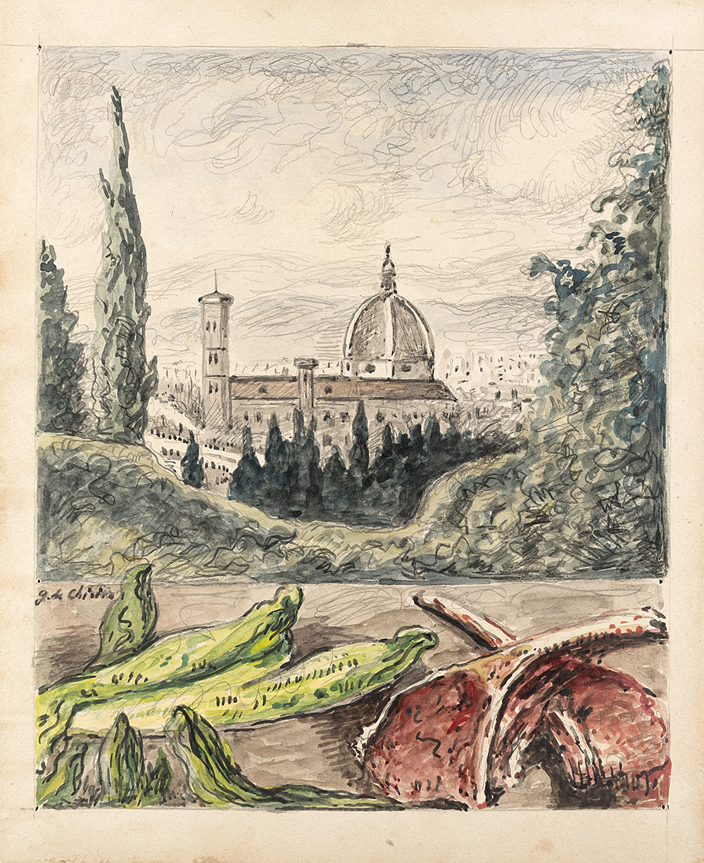 Giorgio de Chirico (Volos 1888 - Roma 1978)"Veduta di Firenze con bistecche...