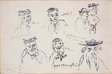 FILIPPO DE PISISFerrara, 1896 – Brugherio, 1956 A) CARICATURE, 1935 inchiostro e matita su carta, cm 28,5x40,2. Firmato e datato in basso a sinistra: pisis parigi 35. B) CARICATURE DI PITTORI, 1935 inchiostro e matita su carta, cm 28,5x40. Firmato e datato in basso a destra: parigi/35 pisis. C) RITRATTO DI RAGAZZO, 1934 china acquerellata su carta, cm 34x21,9. Firmato e datato in basso a destra: pisis 34. Opere archiviate presso l’Associazioneper Filippo De Pisis, Milano, rispettivamentecon i numeri: 04900, 04899, 04901