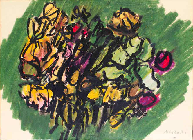 ENNIO MORLOTTI Lecco 1910 – Milano 1992 FIORI pastello a cera su carta applicata su tela,cm 27x36. Firmato in basso a destra: Morlotti.Opera accompagnata da autentica sufotografia firmata dall’artista datata:Milano, 28 febbraio 1983. Opera in corso di archiviazione presso l’Archivio Opere Ennio Morlotti, Milano