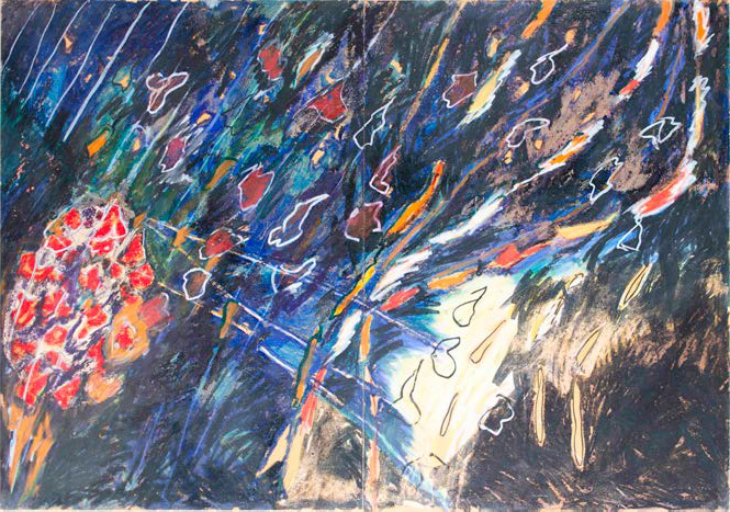 PIER PAOLO CALZOLARI Bologna 1943 STUDIO PER UN TESSUTO, 1985 pastello a cera grassa su cartone, cm 103x145; l’opera si compone di due pannelli dicm 103x72,5 ciascuno. Firmato e datato in basso a destra: Calzolari 1985. Opera accompagnata da autentica sufotografia firmata dall’artista.