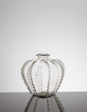 MANIFATTURA MURANESE Vaso in vetro trasparente con decoroapplicato a crinolina, anni ‘30. altezza: cm 22,5, diametro cm 20,5