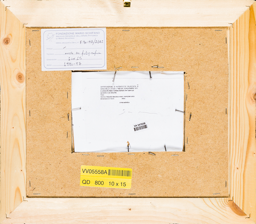 Certificato di autenticità a cura dell'Archivio Generale dell'Opera Pittorica di Mario Schifano - Fondazione Mario Schifano