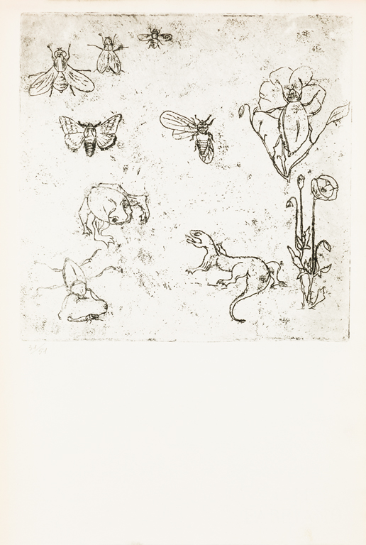 Due acqueforti recano numerazione (Esemplari 31/51) a matita