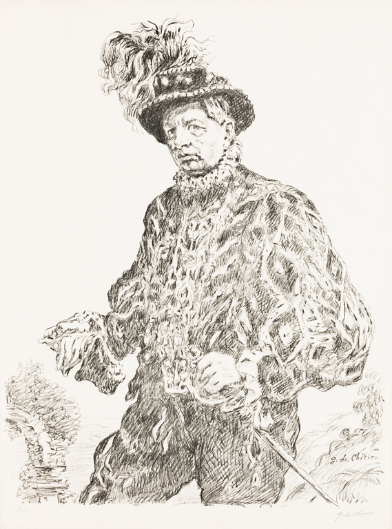 GIORGIO DE CHIRICO (1888-1978)Autoritratto in costume, 1953Litografiacm...