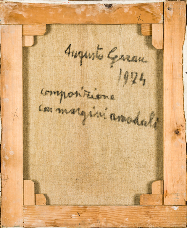 AUGUSTO GARAU (1923-2010)Composizione con margini anomali, 1974Olio su telacm...