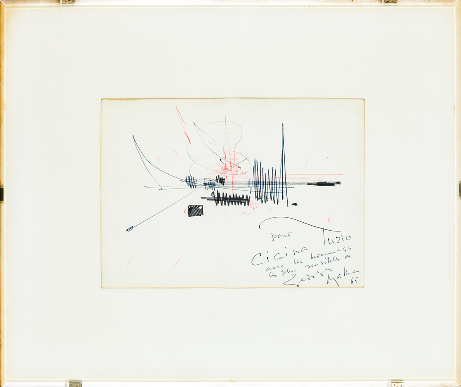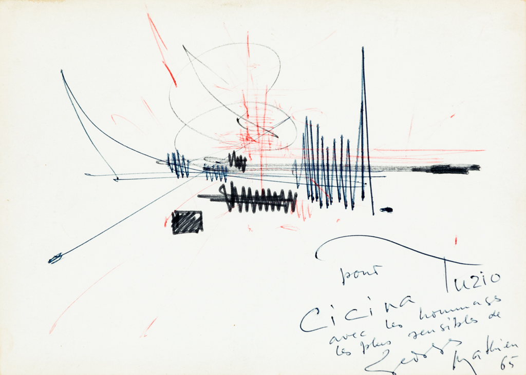 GEORGES MATHIEU (1921-2012)Composition pour Cicina Turio, 1965Biro colorate e...