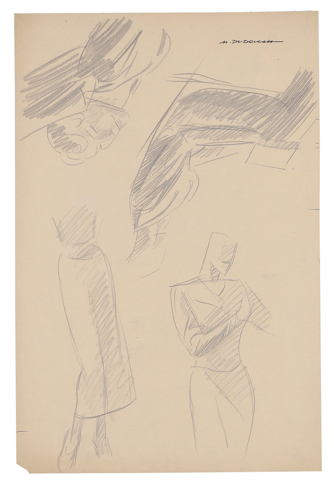 MARCELLO DUDOVICH Trieste 21/03/1878 - Milano 31/03/1962 Studio per figure femminili matita su carta cm. 47,5x31,5; firma in alto a destra, presenta sul verso altro disegno a matita raffigurante viso di donna con timbro dello Studio Dudovich in basso a destra, dichiarazione d'autenticità di Giampaolo Resentera su foto, certificato della Telemarket (BS) allegato, pubblicato a pagina 161 del catalogo "Marcello Dudovich 1878-1962" a cura di Giovanni Granzotto, Giorgio Corbelli Editore.