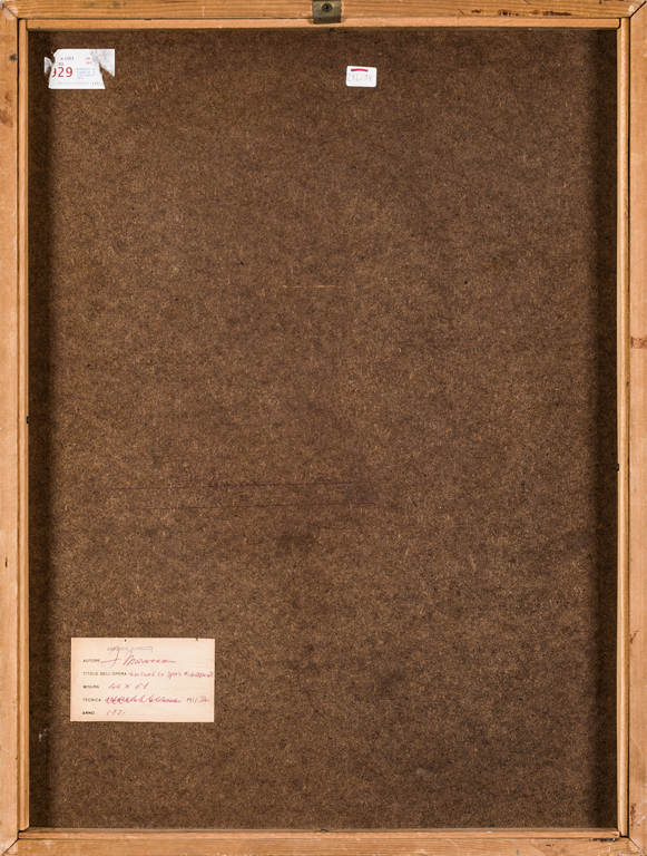 Etichetta dell'Artista al retro con firma e caratteristiche tecniche dell'opera