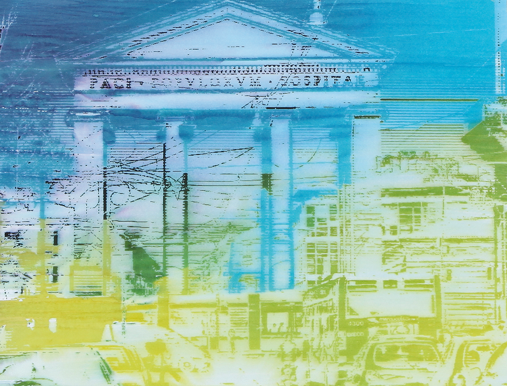 LEONIDA DE FILIPPI Milano 17/04/1969 Paesaggio urbano tecnica mista su carta cm. 30x40, firma, titolo e tecnica al retro, dichiarazione d'autenticità dell'artista su foto.