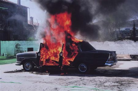 BERNARD AUBERTIN Fontenay aux Roses 1934 Voitures brulée - performance, 1987-2007 stampa lambda cm. 50x75, esemplare 1/3, firma al retro, fotografo Fabrizio Garghetti al retro, pubblicata sul catalogo della mostra "Bernard Aubertin, Energia rosso fuoco", tenutasi presso la Galleria ARTantide.com (VR) dal 6 al 31 Ottobre 2007, pagina 102, pubblicata sul catalogo della mostra "Bernard Aubertin, A ferro e fuoco, opere dal 1962 al 1990" tenutasi presso la Fondazione Berardelli, pagina 108 e pubblicata sul catalogo "Bernard Aubertin" a cura di Dominique Stella e dell'Archivio Aubertin.