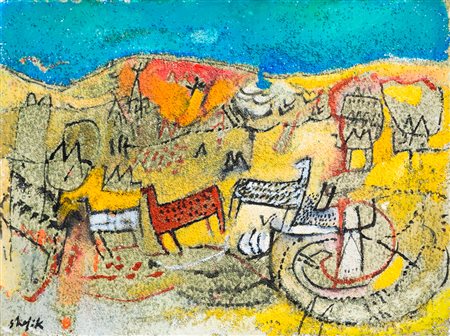 MEDHAT SHAFIK (1956)Graffiti, 1994Tecnica mista e sabbia su telacm 30x40Firma...