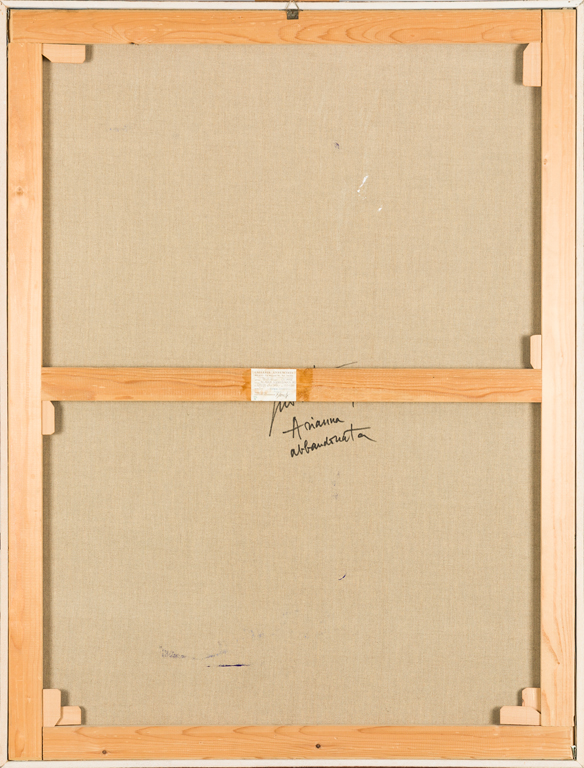 Etichetta della Galleria Annunciata con numero di repertorio e firma di Bruno Grossetti al retro