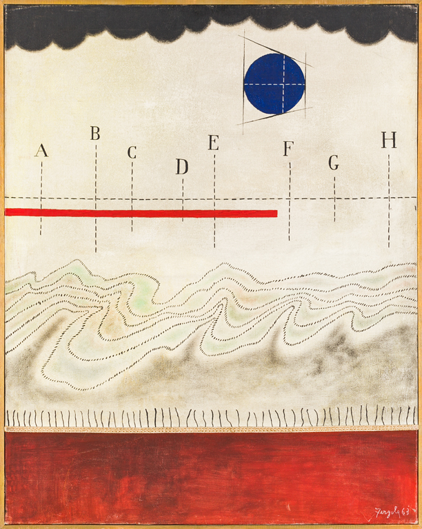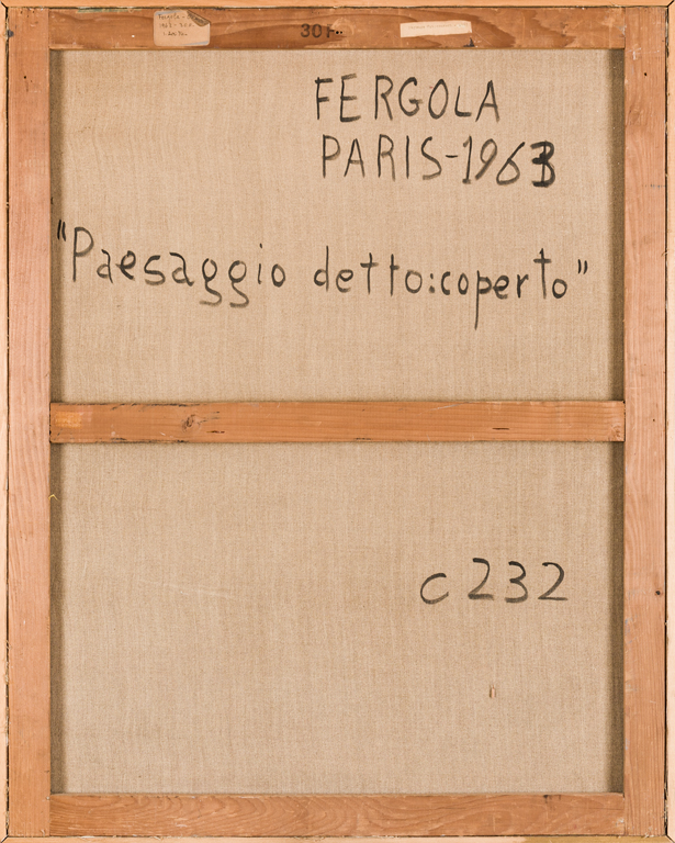 SERGIO FERGOLA (1936-1994)Paesaggio detto: coperto, 1963Olio e applicazioni...