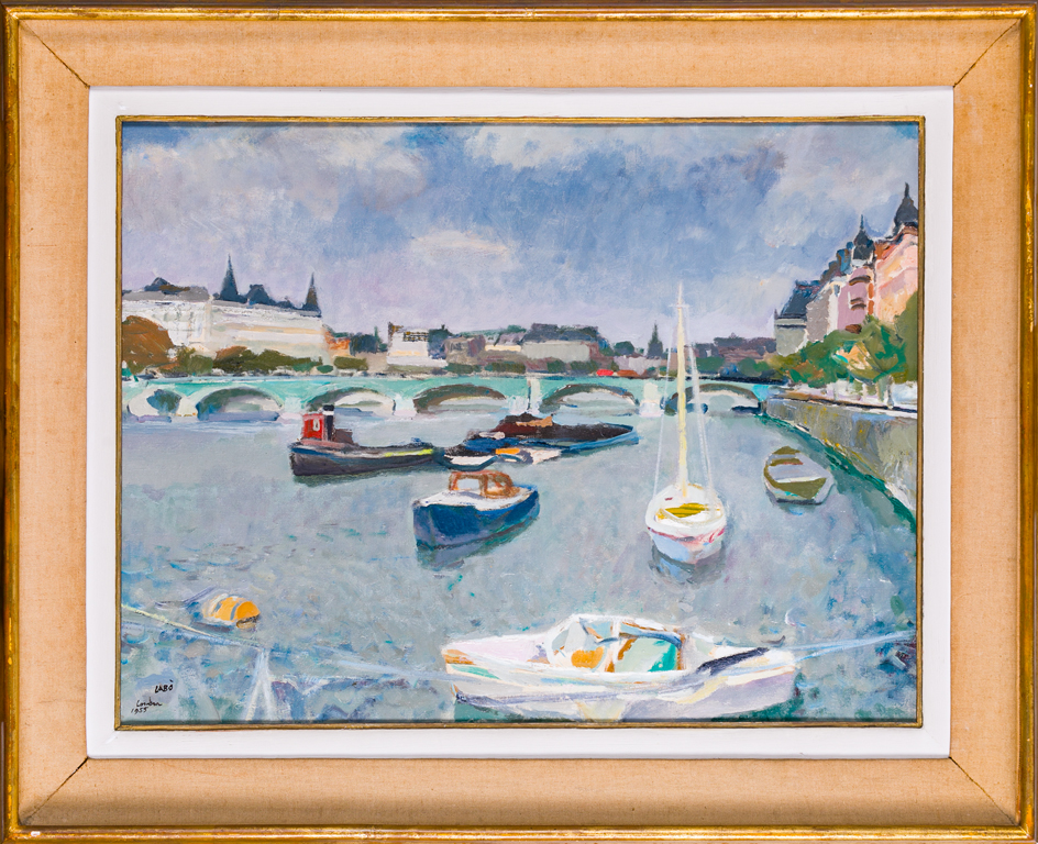 SAVINO LABÒ (1899-1976)Londra (Mattino sul Tamigi), 1955Olio su telacm...