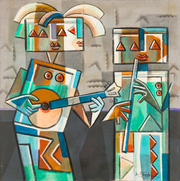 IBRAHIM KODRA (1918-2006)Duetto in sol magg., 1981Olio e tecnica mista su...