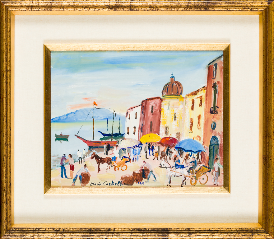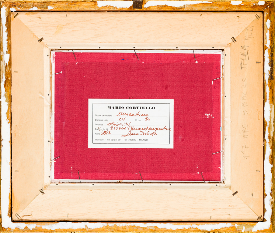 MARIO CORTIELLO (1907-1982)Mercatino, 1972Olio e tecnica mista su cartone...