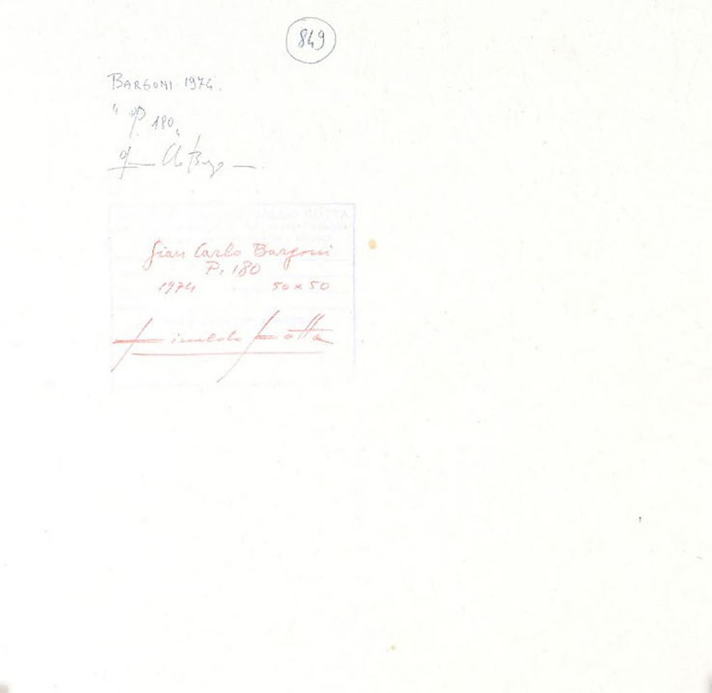 Giancarlo Bargoni (1936) P. 180, 1974 olio su tela, cm 50x50 firmato,...