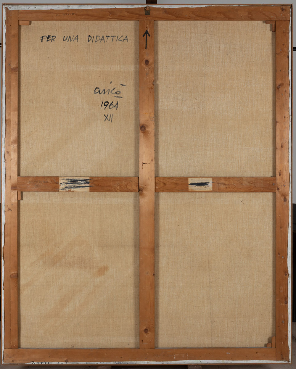 Rodolfo Aricò (1930-2002) Per una didattica, 1964 olio su tela, cm 180x145 firmato e datato in basso a destra firmato, intitolato e datato al retro