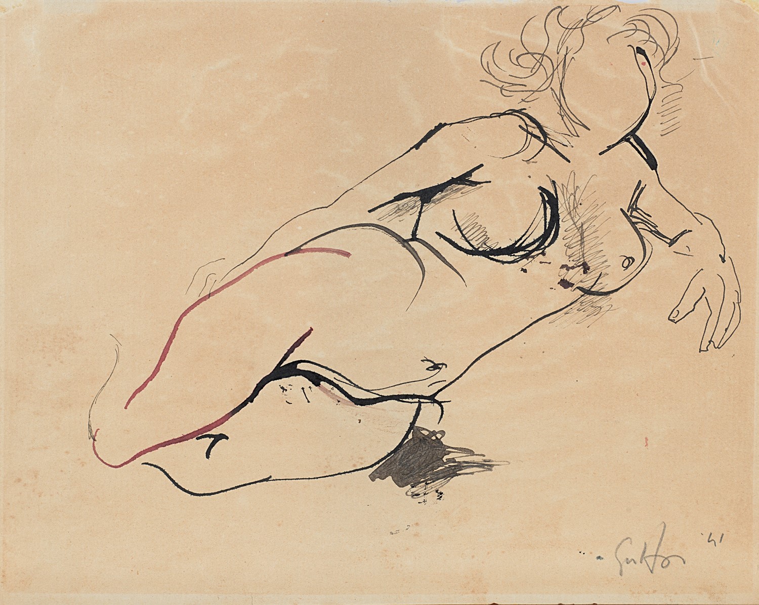 Renato Guttuso Senza titolo (Nudo disteso) 1941 disegno su carta cm 22,8x28,8