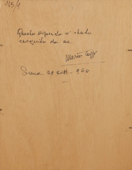 Opera registrata presso l'Archivio Mario Tozzi, Foiano (AR) con il n. 2480 in data 6 febbraio 2019 come da autentica su fotografia.