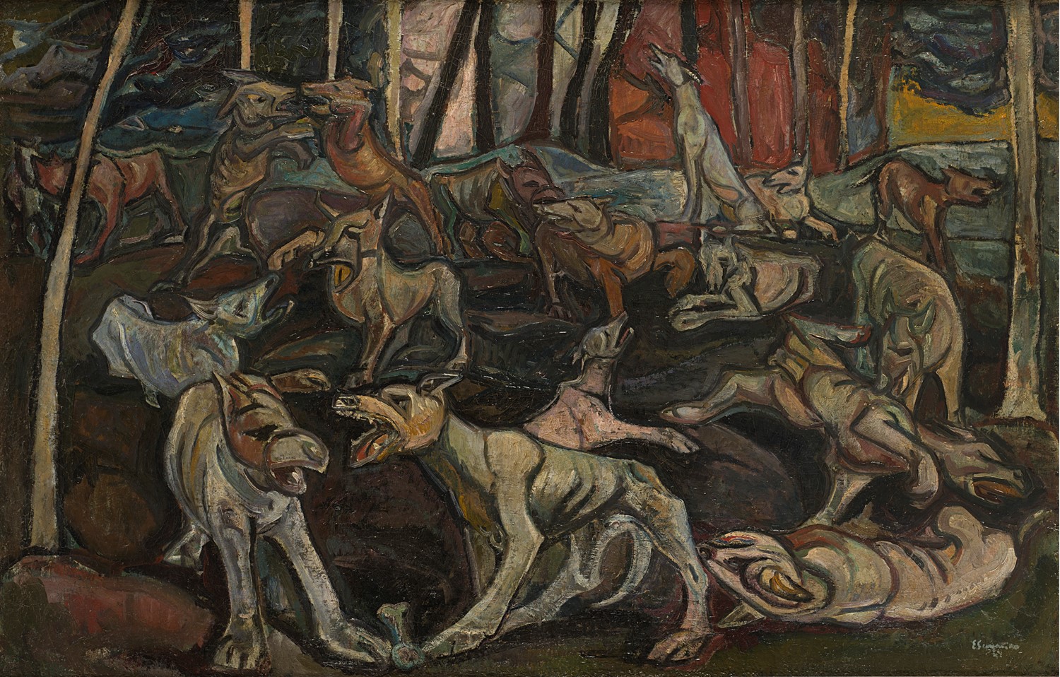 Emilio Scanavino La battaglia dei cani 1949 olio su tela cm 90x139,6