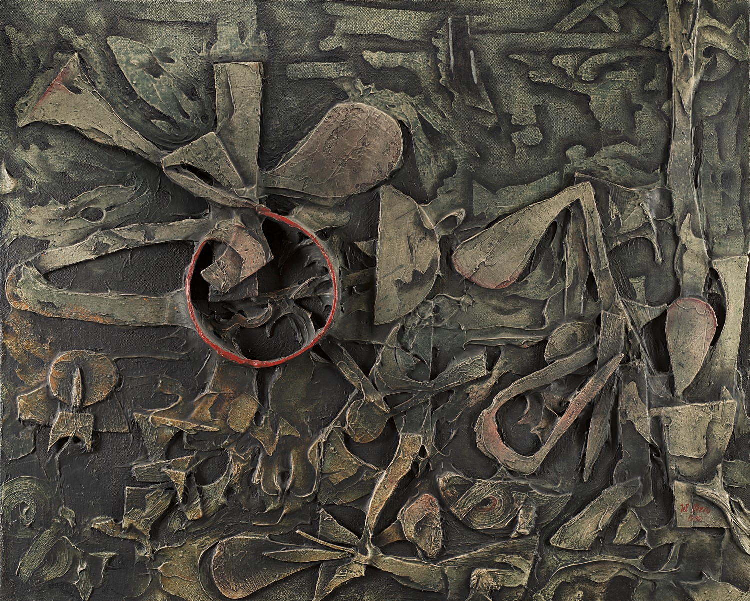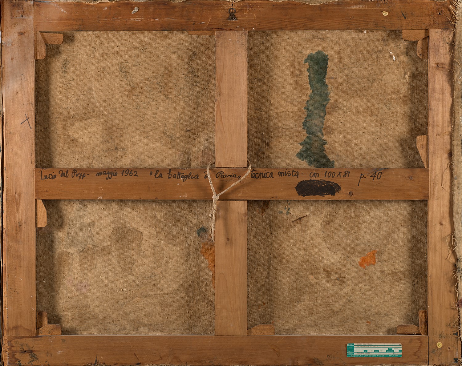 Lucio del Pezzo La battaglia di Pavia 1962 tecnica mista su tela, cm 100x81 cm 100x81