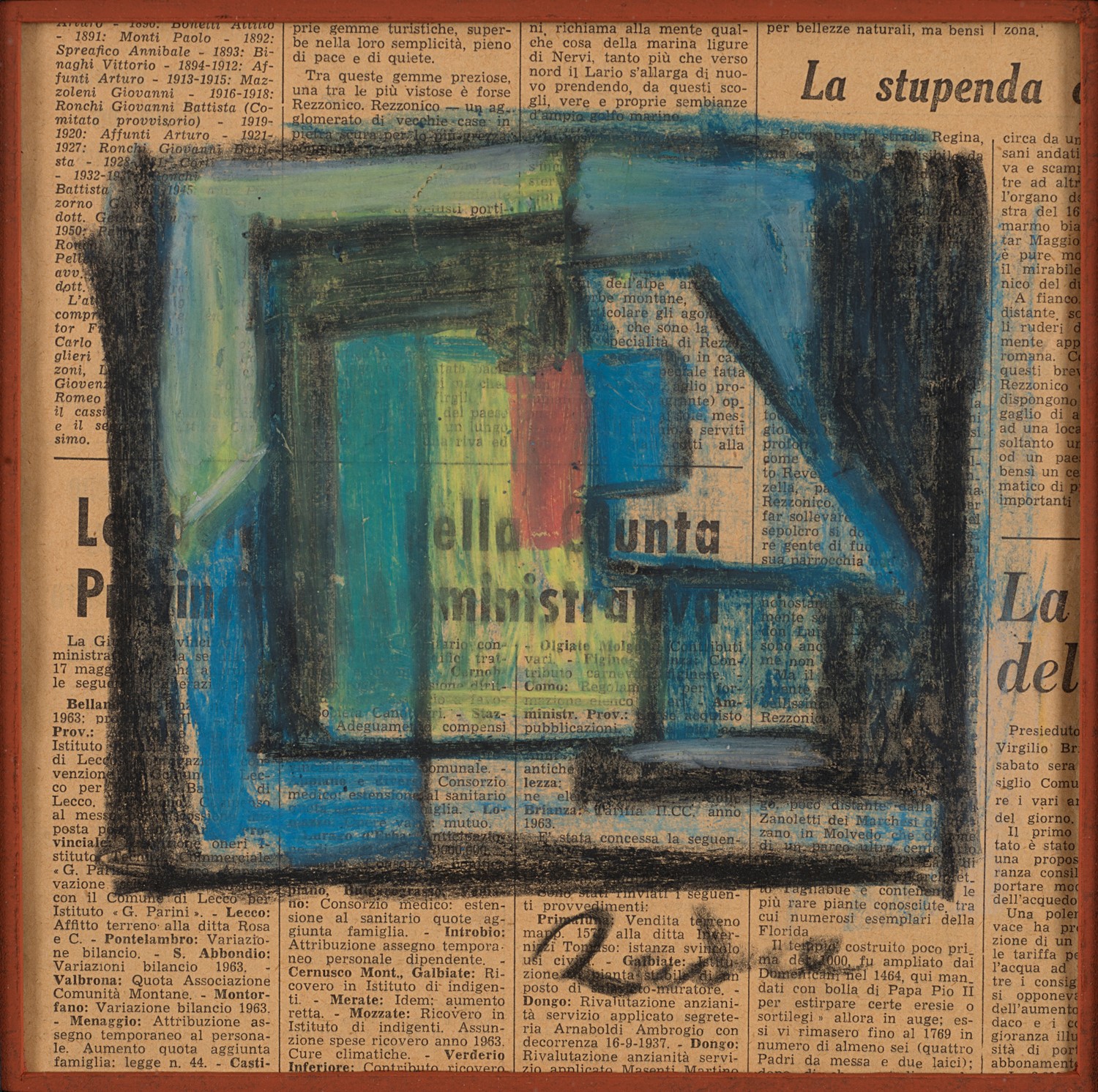 Mario Radice Senza titolo pastelli su carta di giornale cm 22,5x22