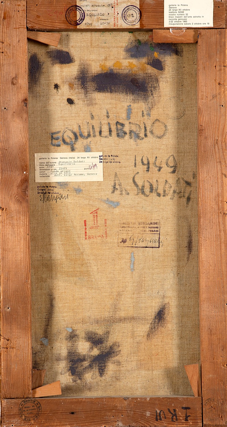 Titolato, datato e firmato al verso: Equilibrio 1949, A. Soldati