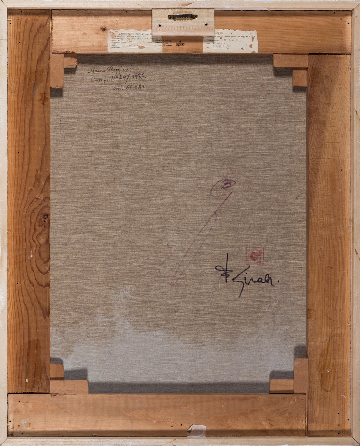 Genova, Galleria La Polena, Reggiani, 12 aprile - 8 maggio 1973 (etichetta al verso); Bra (CN), L'Angolo Arte Contemporanea, Mauro Reggiani, 18 novembre - 18 dicembre 1976.