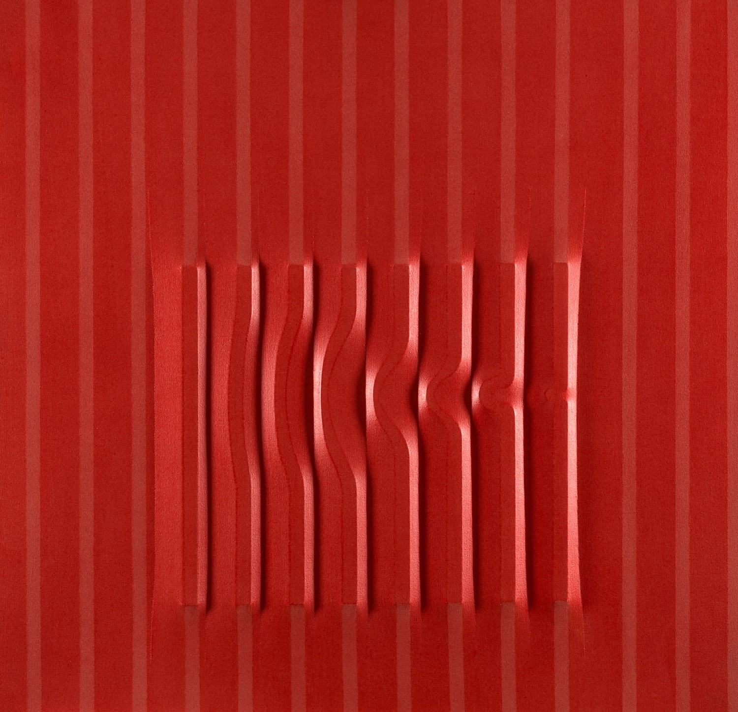 Agostino Bonalumi Rosso 1976 tela estroflessa e tempera vinilica cm 100x100